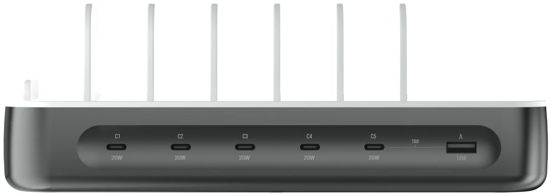 Die fünf USB-C-Ports der Ladestation Team liefern jeweils 20W Leistung, sodass deine Geräte deutlich schneller geladen werden können als mit den meisten Standardladegeräten. Egal, ob Smartphone, Tablet, Kopfhörer oder andere Geräte: Diese USB-Charging-Station bietet dir immer eine stabile und effiziente Ladeleistung. Das macht sie zur idealen Ladestation für mehrere Geräte, mit der du Zeit sparst und immer einsatzbereit bleibst.