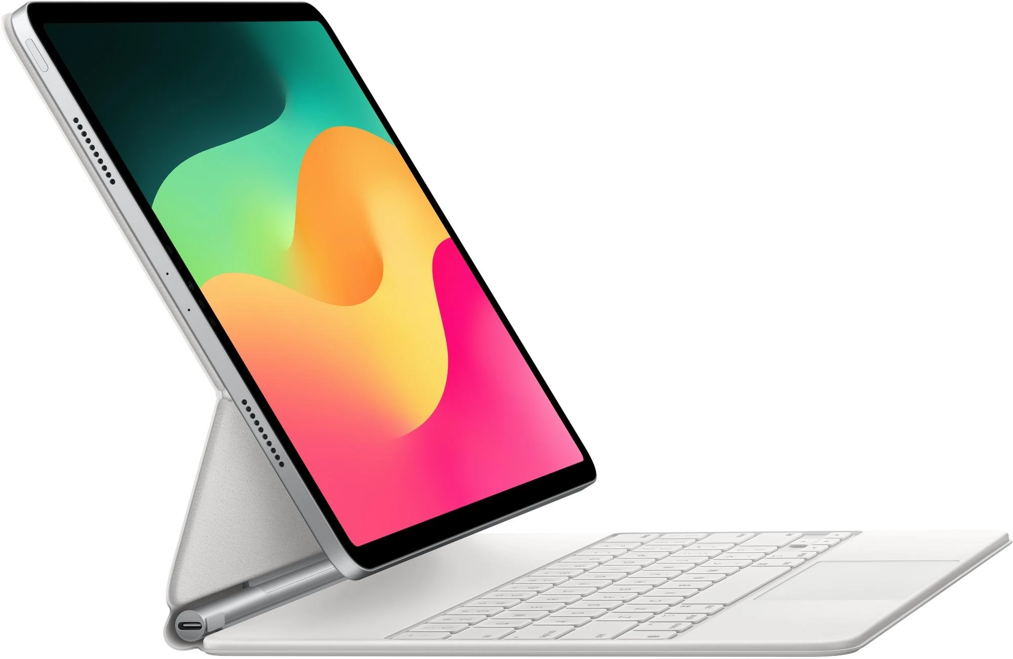 Das Magic Keyboard ist der perfekte Begleiter für das iPad Air. Es hat ein schlankes, mobiles Design und sorgt für ein angenehmes Tippen. Und du hast ein Trackpad, um ganz präzise zu arbeiten. Die Tastatur hat eine Reihe mit 14 Funktionstasten, einen USB‑C Anschluss zum Pass‑Through Laden sowie einen Schutz für die Vorder‑ und Rückseite deines iPad. Das freischwebende Design lässt sich stufenlos an mehrere Betrachtungswinkel anpassen und ein großes Trackpad aus Glas gibt dir neue Möglichkeiten, mit iPadOS zu arbeiten.