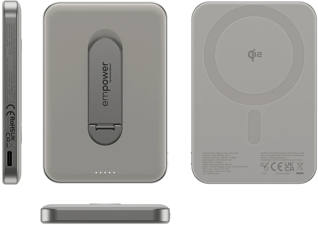 Die empower bank mit Kickstand von empower by PanzerGlass bringt Power und Funktion clever zusammen. Mit nur 11 mm ist sie superdünn, aber ultra stabil. Der integrierte Standfuß macht’s easy, dein Phone aufzustellen – egal ob zum Netflixen, Zocken oder Chatten.