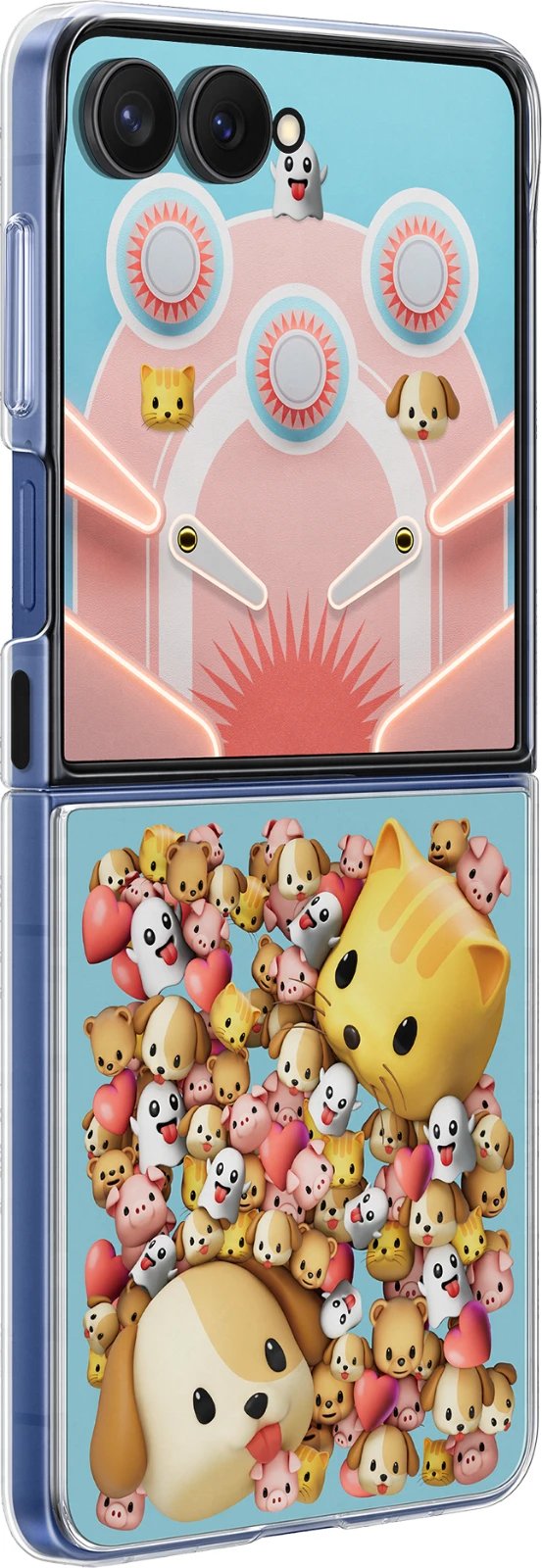 Das Flipsuit Case übernimmt das Styling deines Galaxy Z Flip7 und lässt es noch besser aussehen. Es besteht aus einem Rahmen und einer Motivkarte mit integrierten LED-Effekten. Sobald du die Karten einlegst, wird der passende Sperrbildschirm auf dem Frontdisplay angepasst. Und für die kleine Gaming-Pause unterwegs: Einfach den Sperrbildschirm hochwischen und ein Flipperspiel direkt auf dem Frontdisplay spielen, ohne deine Smartphone zu öffnen.