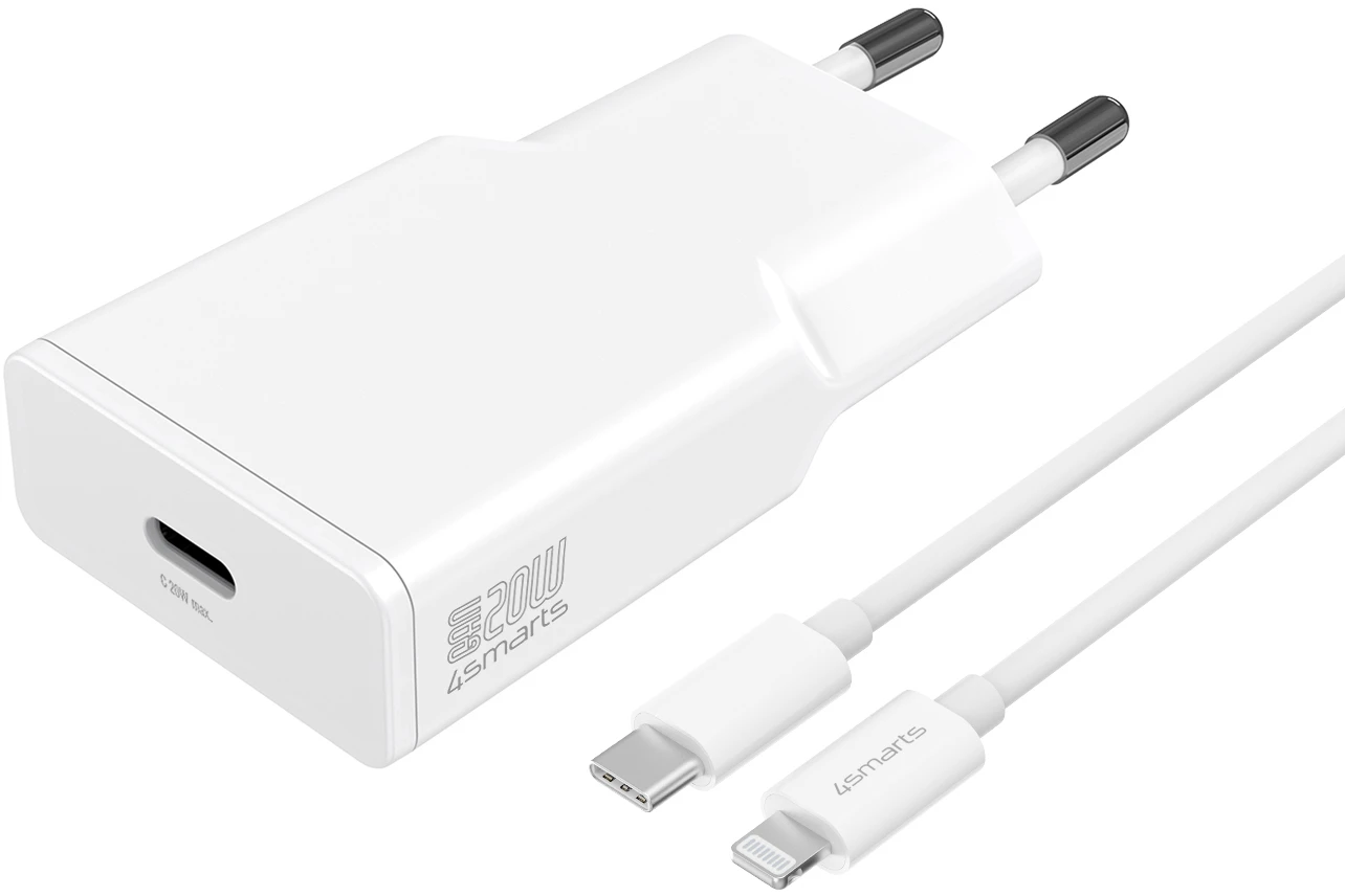 4Smarts Netzladegerät PDPlug Slim 20W GaN 1C + USB-C Lightning Kabel Weiß